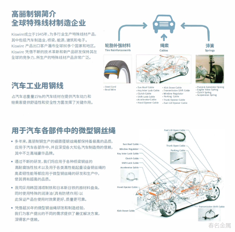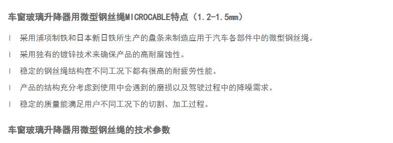 車窗玻璃升降器用微型鋼絲繩
